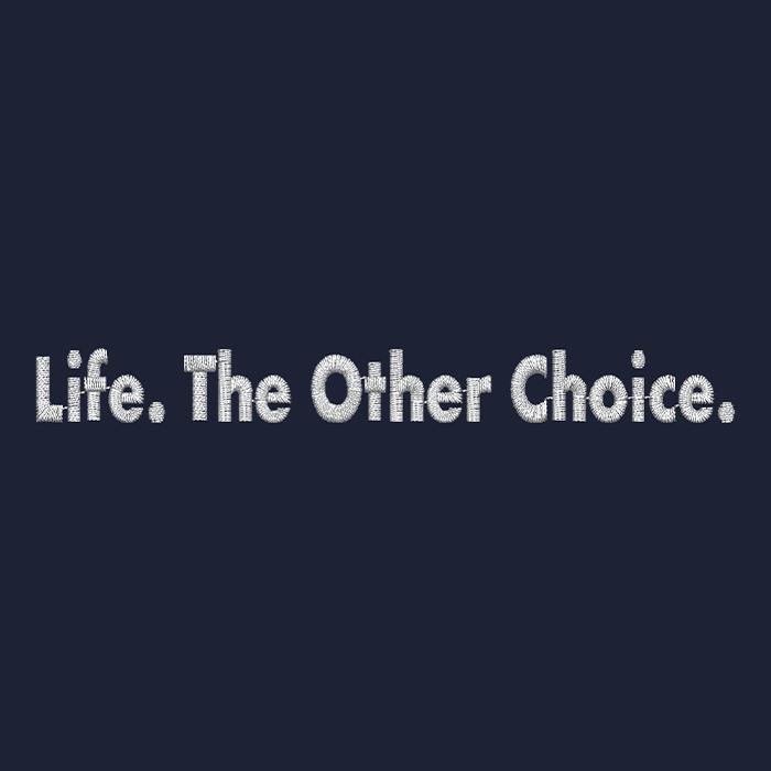 This navy blue baseball hat features the embroidered phrase Life. The Other Choice. on the front, with the Right to Life of Michigan website, rtl.org, and a green rose logo on the back. Perfect for running errands, going for a walk, attending outdoor sporting events and more. Get yours today and spread the message of life—the other choice!