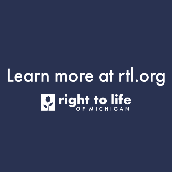 Design Option 2: Direct individuals to a wealth of prolife resources with the message “Learn more at rtl.org” with the Right to Life of Michigan logo.